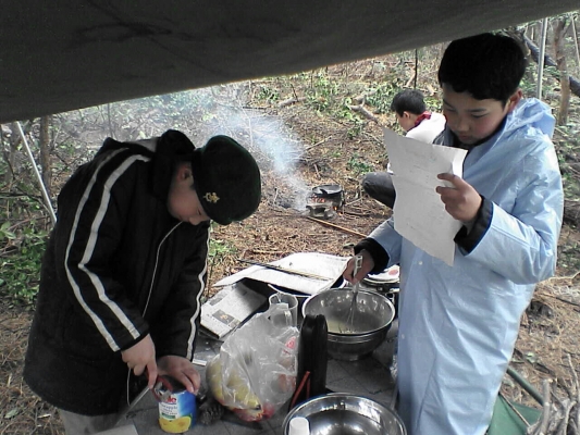 2006年03月20日 3月18日 隊集会「野外料理」実施 2006-03-20 17:32:00 先日、団野営場にて隊集会が行われました。 野外料理のメニューは各班でおいしいおやつを作ることを目標として、事前に班会議でメニューを決めて、事前に各班で食材購入をして、当日の隊集会となりました。 各班、おいしいメニューが出来ました。