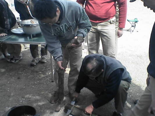 2006年04月10日 地区ベンチャー合同隊集会 2006-04-10 17:47:00 去る4月9日(日)、ボーイスカウト三河西地区野営場(西尾市西野町公民館)にて、「地区ベンチャー合同隊集会」が行われました。 実施の目的は、地区内のベンチャーの相互交流を大きな目的として、高度な野営技能を身につけようと実施されました。 地区内の多くのベンチャースカウトが集結して、スカウト同士交流を図りながら、ダッチオーブンでチキンや豚肉を焼いたり、竹でかやくご飯を作ったりと楽しい一日となりました。